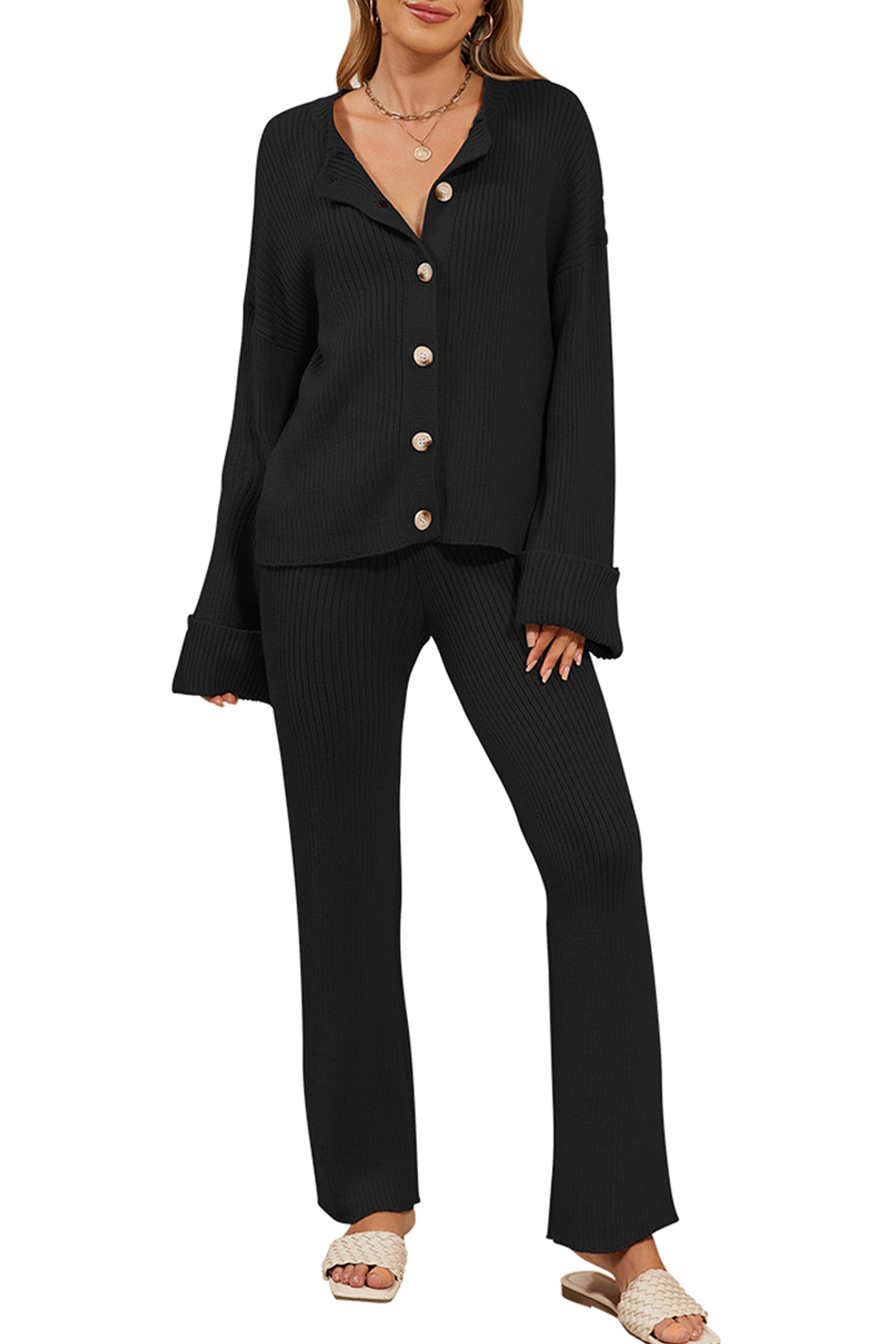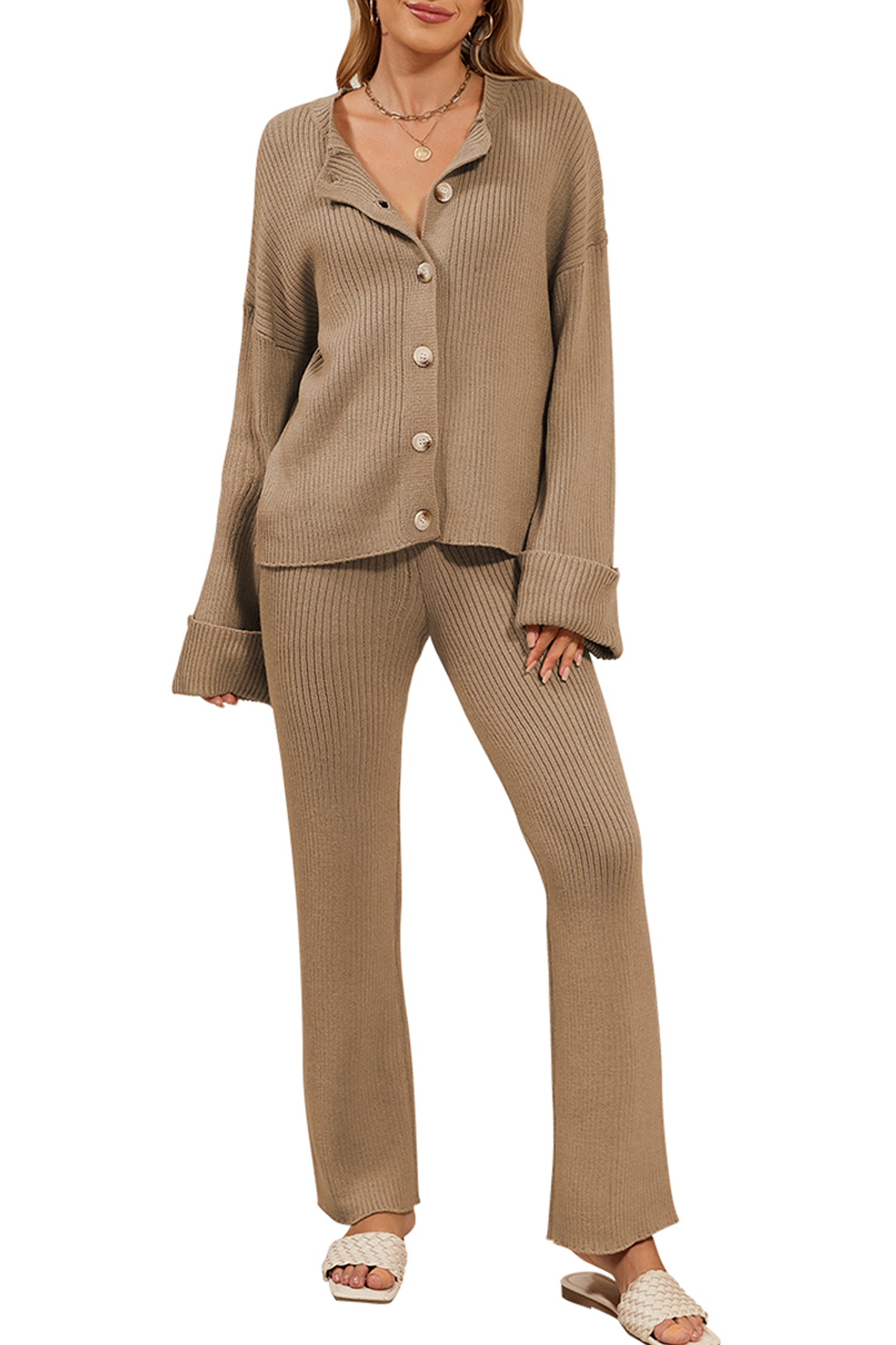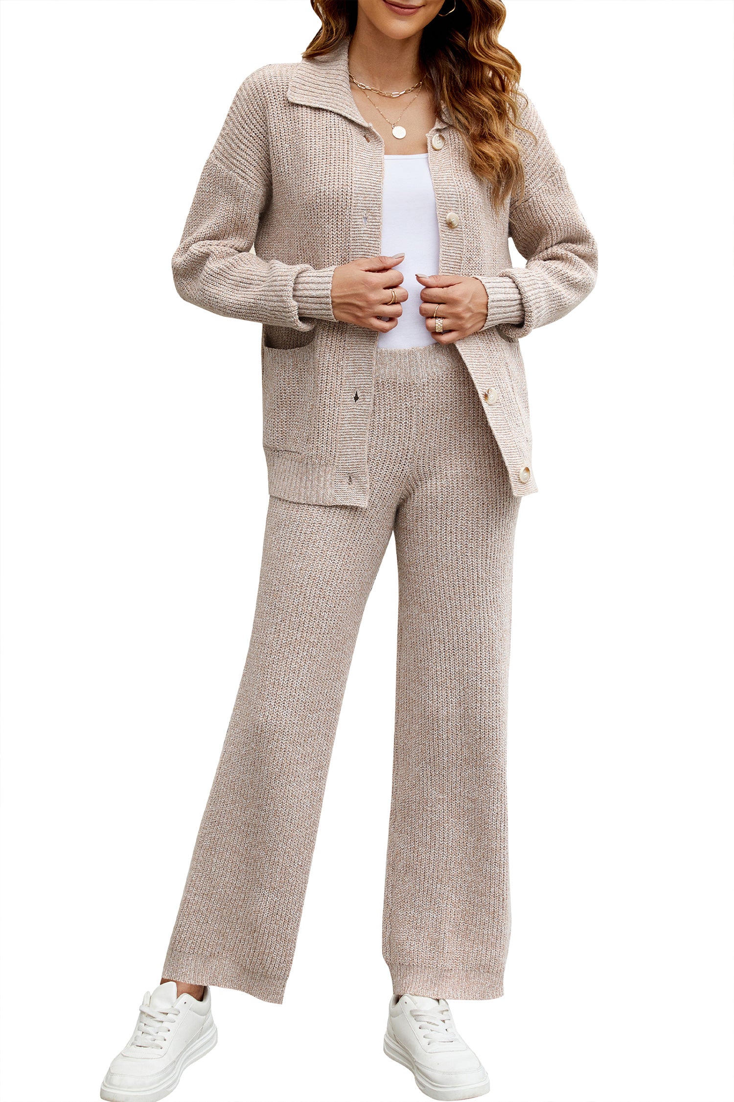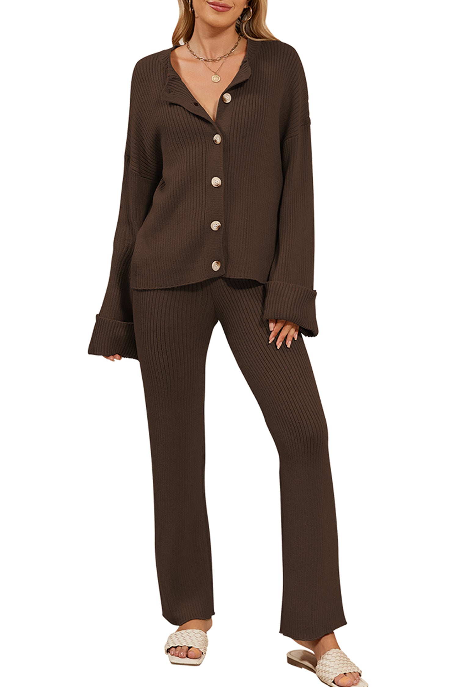 Cakulo Women's Loungewear Button Sweater & Wide Leg Pants Cakulo Women's Loungewear Button Sweater & Wide Leg Pants