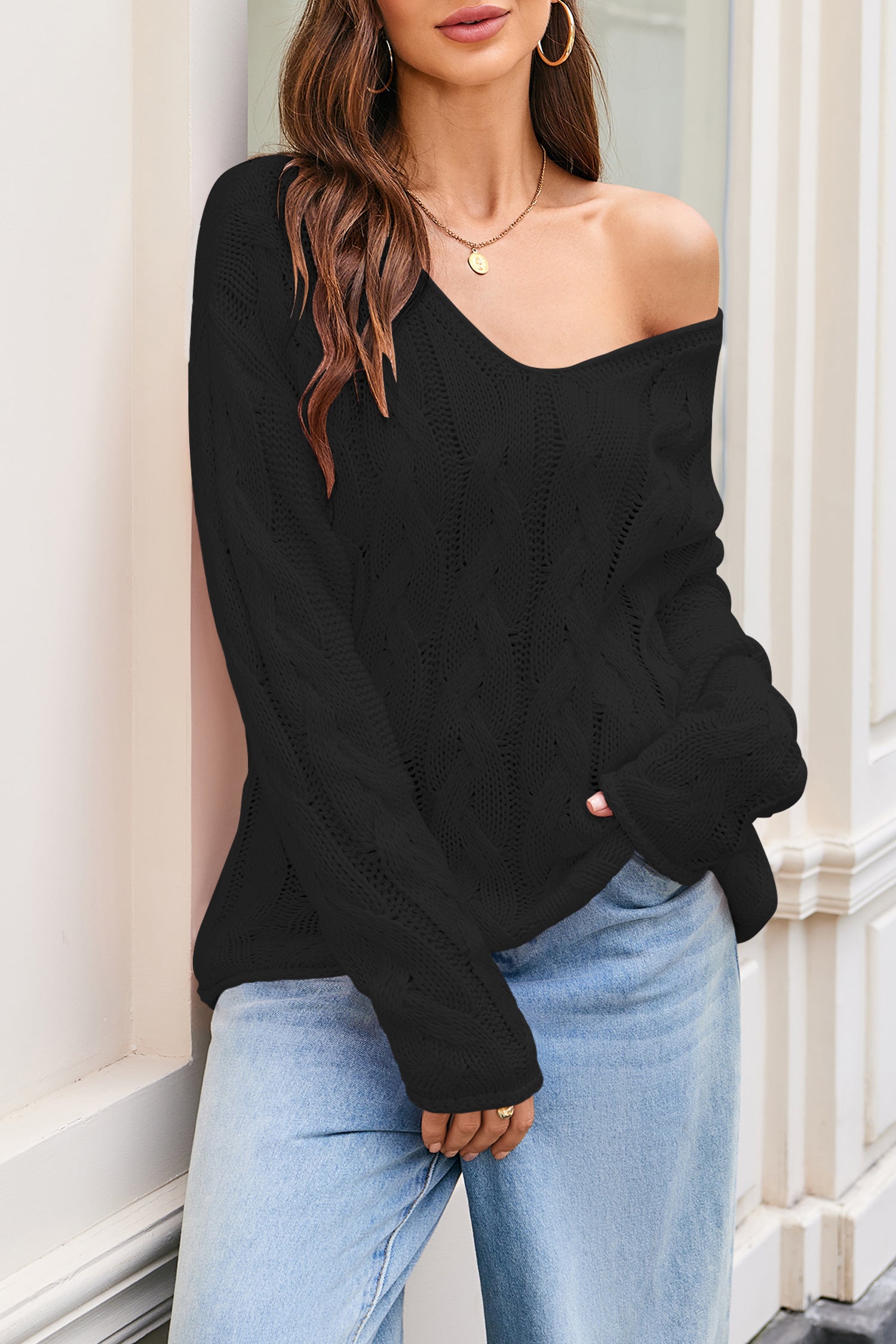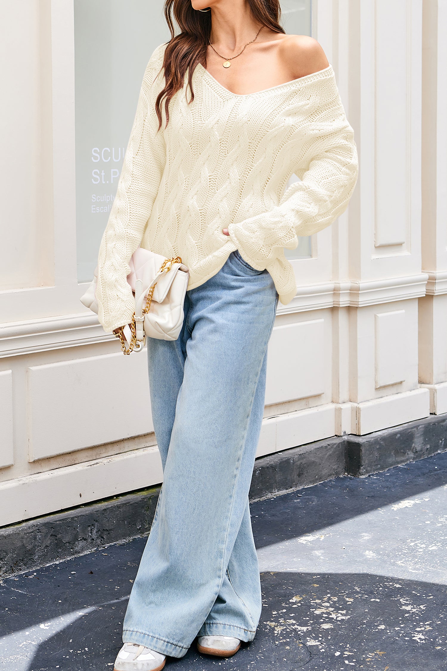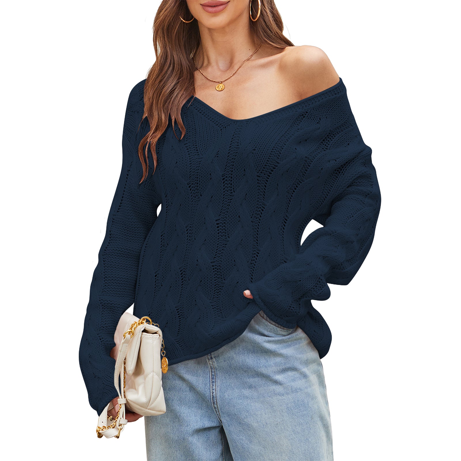 Cakulo Womens 2025 Oversized V - Neck Off - Shoulder Cable Knit Sweater Cakulo Womens 2025 Oversized V - Neck Off - Shoulder Cable Knit Sweater