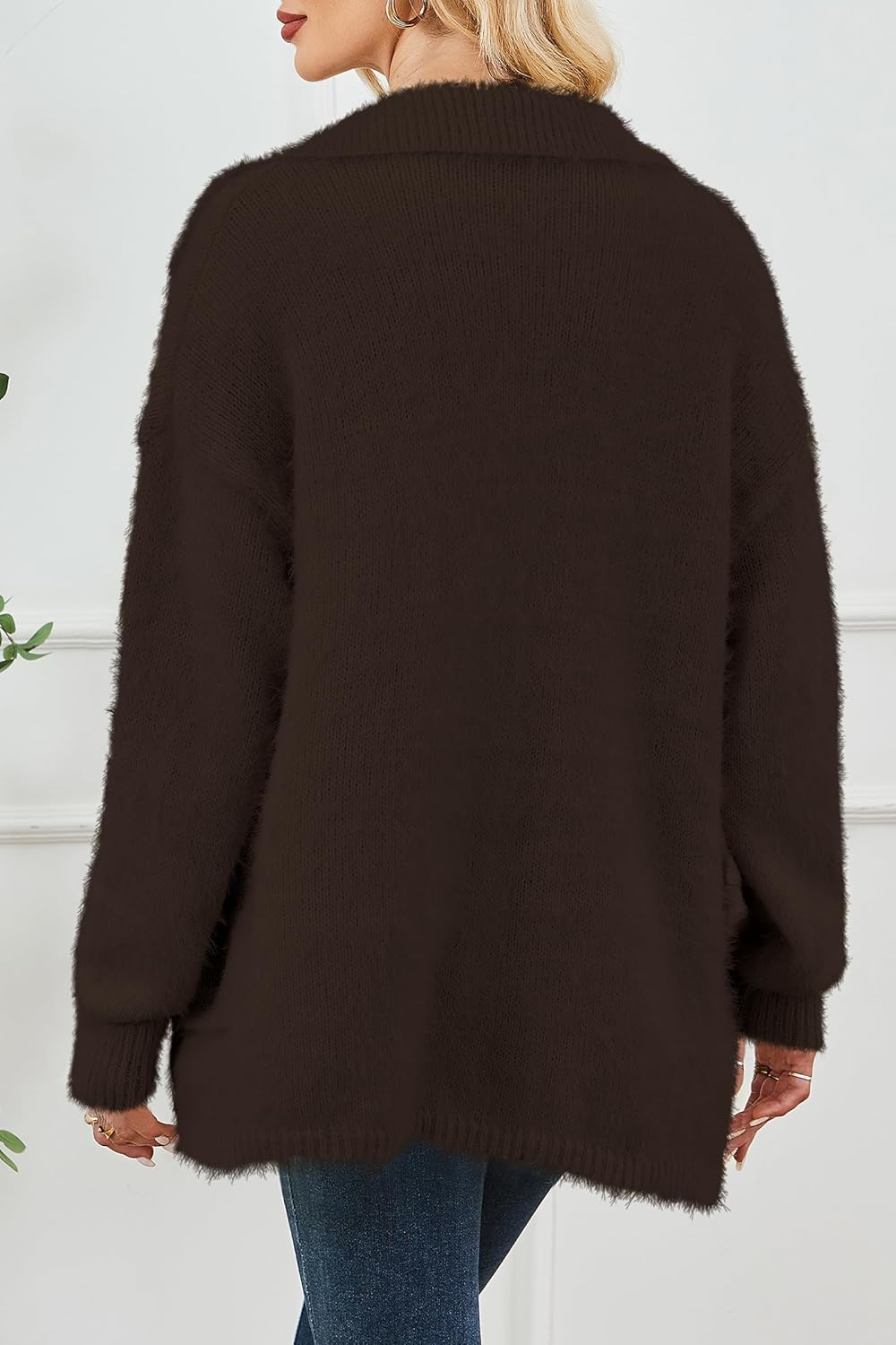 Cakulo Womens Oversized Fuzzy Collared Cardigan with Pockets for Fall/Winter Cakulo Womens Oversized Fuzzy Collared Cardigan with Pockets for Fall/Winter