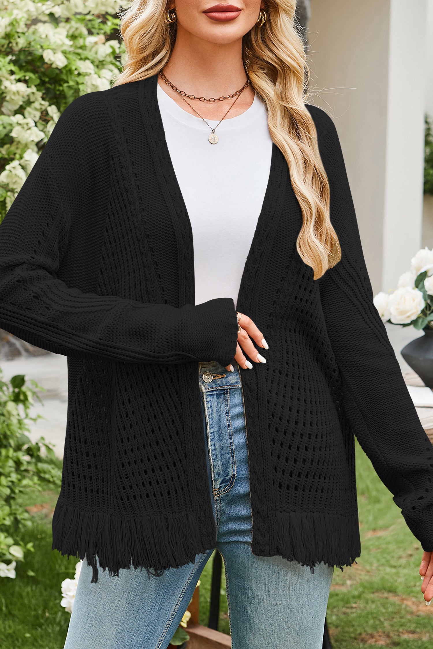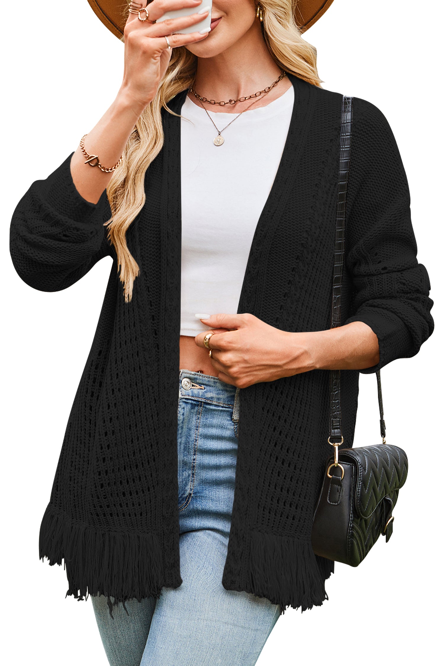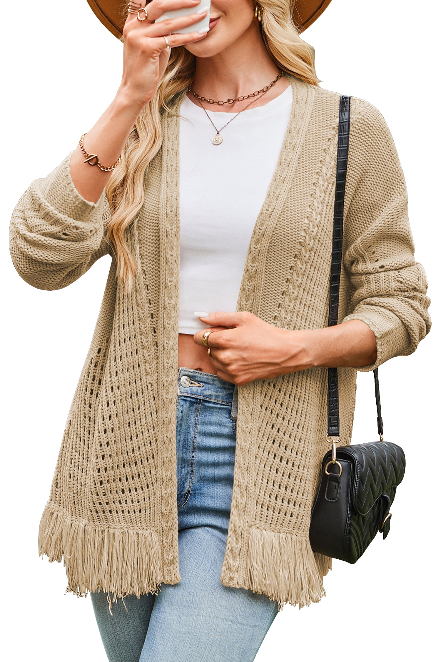 Cakulo Womens Crochet Fringe Cable Knit Oversized Cardigan Cakulo Womens Crochet Fringe Cable Knit Oversized Cardigan