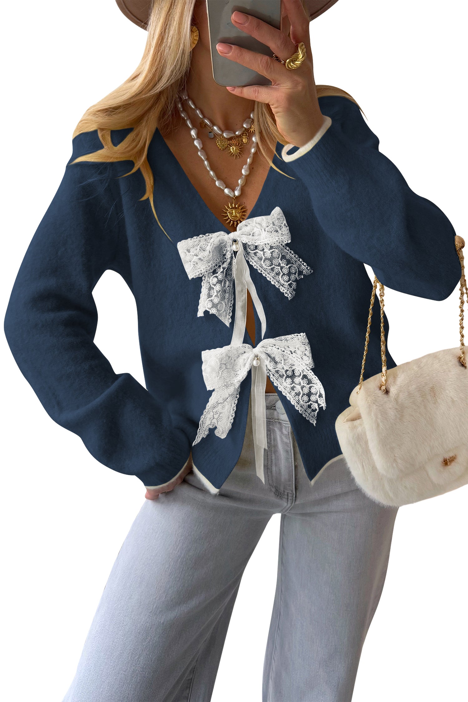 Cakulo Womens Bow Sweater Tie - Front V - Neck Lightweight Knit Crop Cardigan Fall 2025 Cakulo Womens Bow Sweater Tie - Front V - Neck Lightweight Knit Crop Cardigan Fall 2025