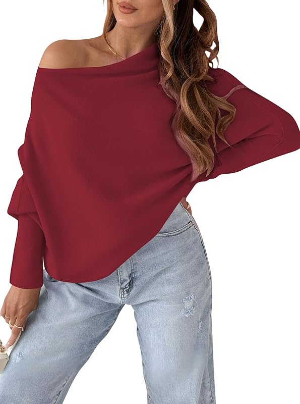 Cakulo Batwing Long Sleeve Off The Shoulder Sweater for Women 2025 Trendy Cakulo Batwing Long Sleeve Off The Shoulder Sweater for Women 2025 Trendy