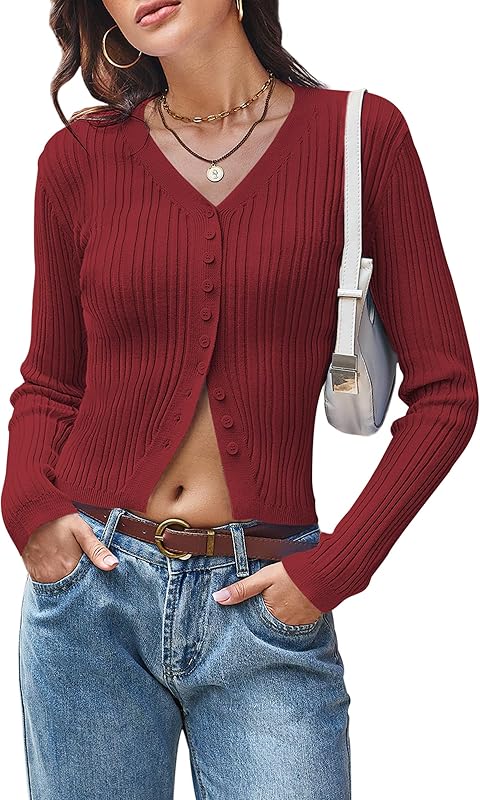 CAKULO Women Button V Neck Cardigan Sweater Contrast Knit Lightweight Long Sleeve Open Front Cropped Cardigans CAKULO Women Button V Neck Cardigan Sweater Contrast Knit Lightweight Long Sleeve Open Front Cropped Cardigans