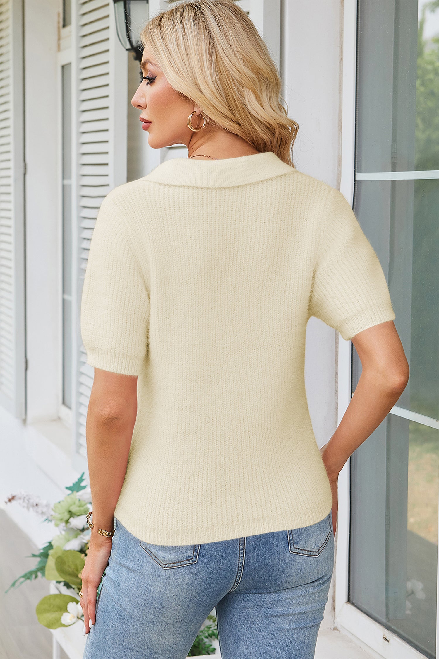Cakulo Womens Fuzzy Cropped Short Sleeve V Neck Fall Sweaters Polo Collared Knit Pullover Sweater Cakulo Womens Fuzzy Cropped Short Sleeve V Neck Fall Sweaters Polo Collared Knit Pullover Sweater